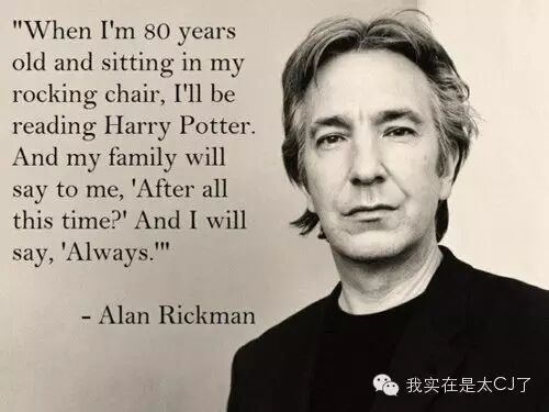 Alan Rickman曾经说过:“When I’m 80 years old and sitting in my rocking chair, I’ll be reading Harry Potter. And my family will say to me, 'After all this time?' And I will say, 'Always.'”。结果很遗憾,老爷子并没有等到80岁那天坐在摇椅上阅读《哈利波特》的到来。